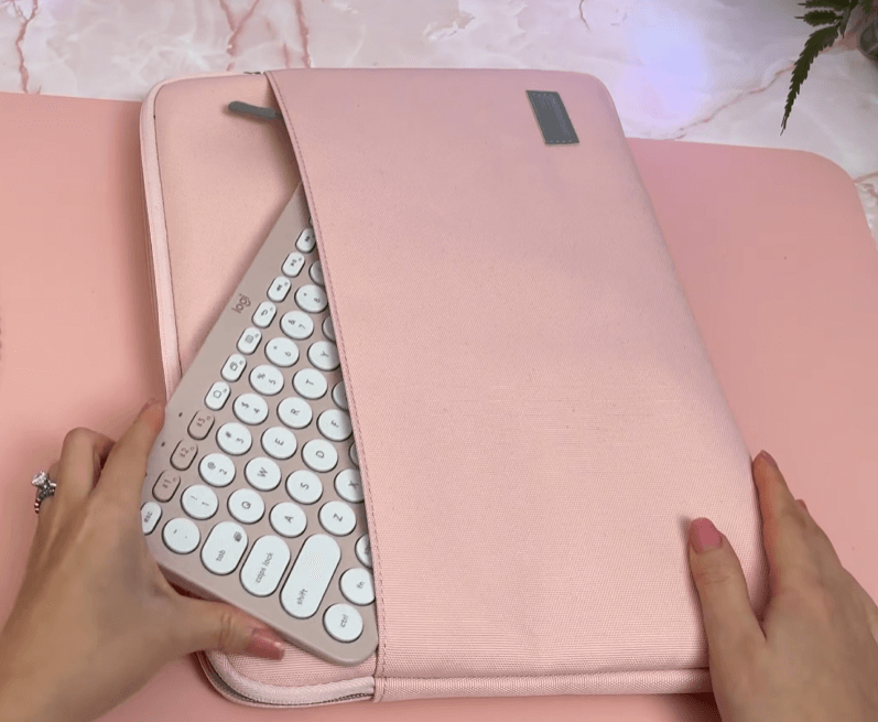 I have this soft carry pouch from Moko that fits my 12.9 inch iPad Pro. This is great for protecting your iPad from scratches, especially if you’re not using an iPad case. It also has an extra pocket that can fit a small keyboard.